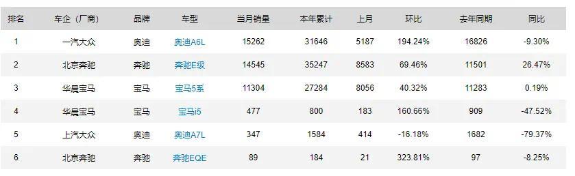 拿到3月份德系C级轿车的销量数据,我的第一反应和大家可能差不多——BBA是不是遇到麻烦了?15262辆、14545辆、11304辆。单看奥迪A6L、奔驰E级、宝马5系这三款车,销量表现依然排在前列。但如果仔细拆解,这份榜单里透露出的信息并不像表面那么简单。